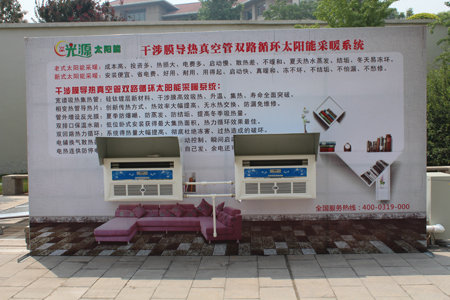 一直以來,已有太陽能采暖系統存在的制造成本高、初裝投資大、冬季凍害導致系統破壞,夏季熱水過剩導致系統結垢,系統循環熱損大、互補能源耗能高、能源轉換啟動慢、室內散熱效率低等共性問題,河北光源太陽能有限公司開發了“干涉膜內導熱真空管雙回路循環無聯箱太陽能采暖系統”,按照技術創新驅動,面向市場需求,研發產品適用、高質量、低成本、性能穩定、指標先進的思路,形成的新技術、新產品、新材料,是對光源自有知識產權精髓的優化整合,創新集成。