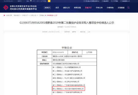 博野縣2019年第二批壁掛爐設備采購入圍項目中標候選人公示