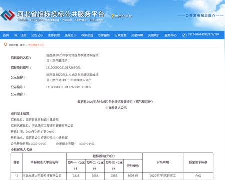 臨西縣2020年農(nóng)村地區(qū)冬季清潔取暖項目