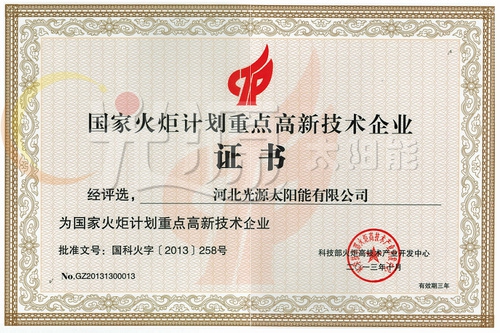國(guó)家火炬計(jì)劃重點(diǎn)高新技術(shù)企業(yè)證書(shū)
